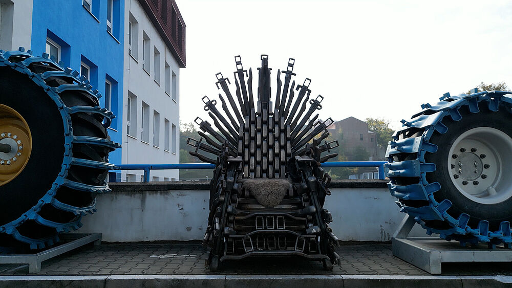Neben großartigen Produkten bringen wir auch unseren Kettenthron aus 100% Forstbändern auf dem gern Platz genommen werden kann.